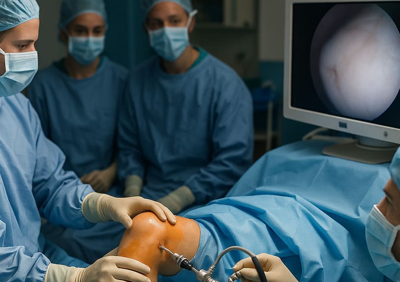 - Il chirurgo pratica 2–3 micro-incisioni intorno al ginocchio;